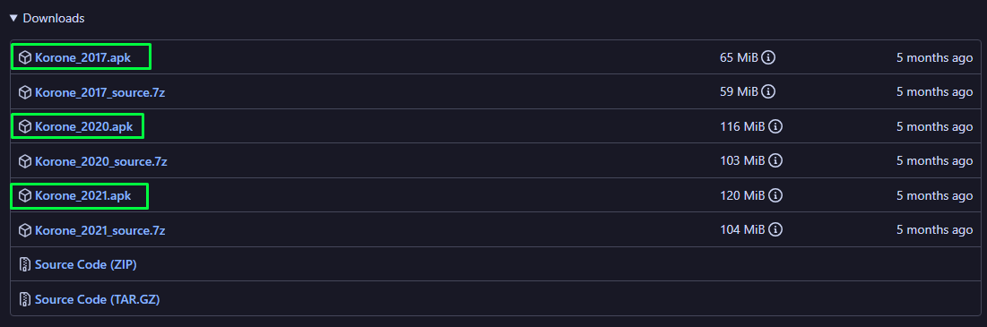 <h2 align="center"><strong>Unofficial release for jonfield's 2017, 2020 and 2021 korone APKs:</strong></h2>